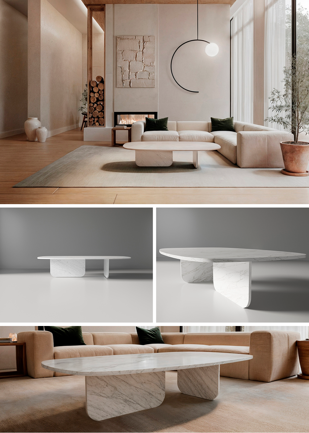 Diseño Sofisticado y Personalizable Redefine tu espacio con esta mesa de centro rectangular de líneas suaves y diseño contemporáneo. Elaborada en mármol natural, su silueta elegante y la base escultural aportan un equilibrio perfecto entre funcionalidad y arte. Una pieza que se adapta a cualquier ambiente sofisticado, convirtiéndose en el centro de todas las miradas.