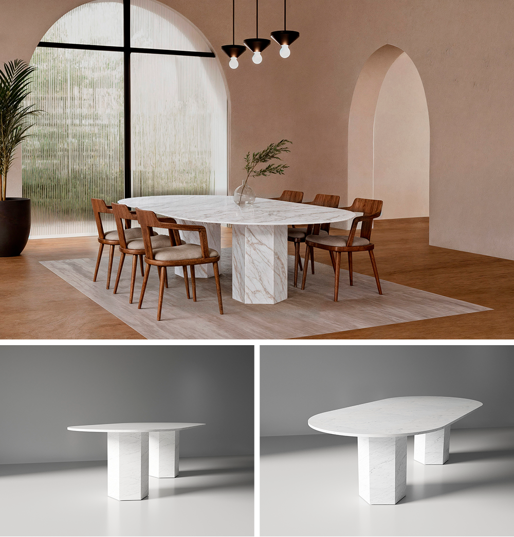 La Mesa Nina fusiona artesanía y diseño contemporáneo. Su silueta robusta y sus acabados impecables la convierten en el centro de atención en comedores y salas de reuniones.